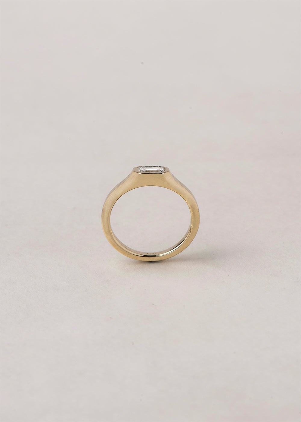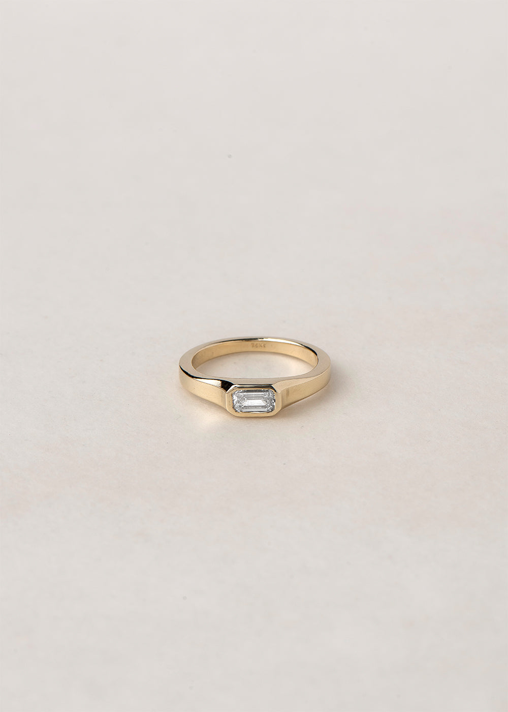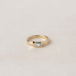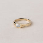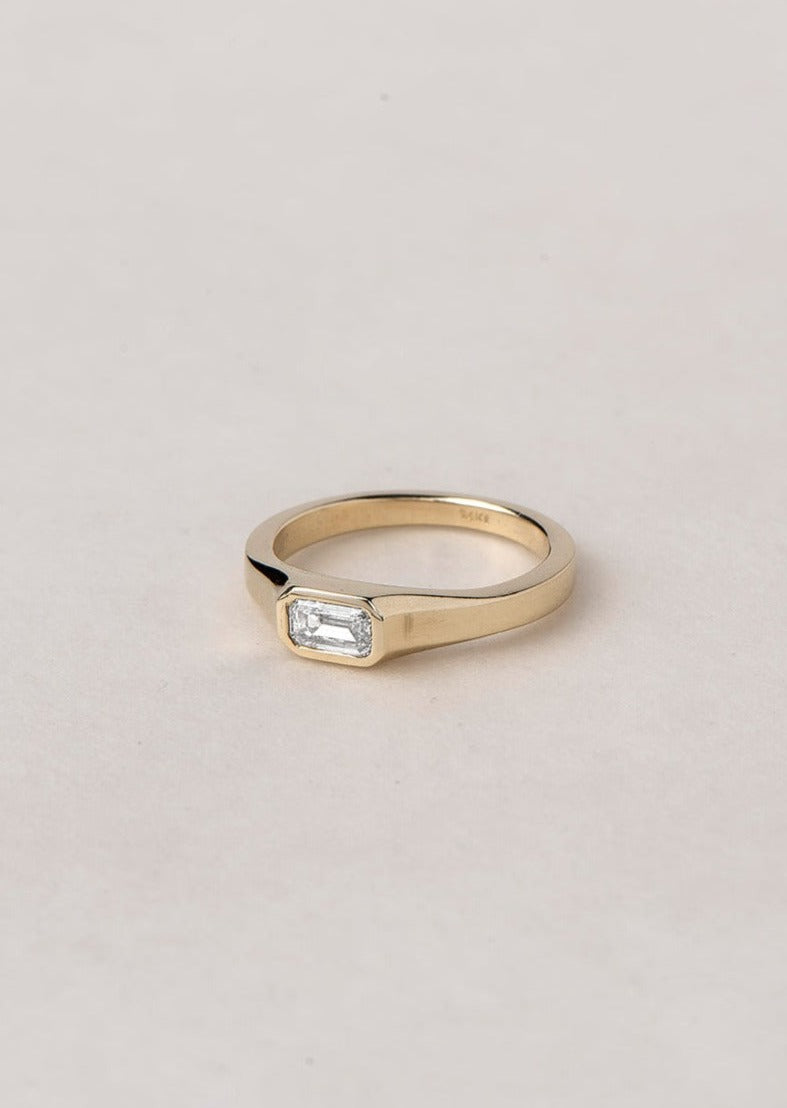 An architectural , art deco inspired ring featuring clean lines for effortless elegance. Bezel setting for a seamless flow and maximum comfort and protection of the stone.