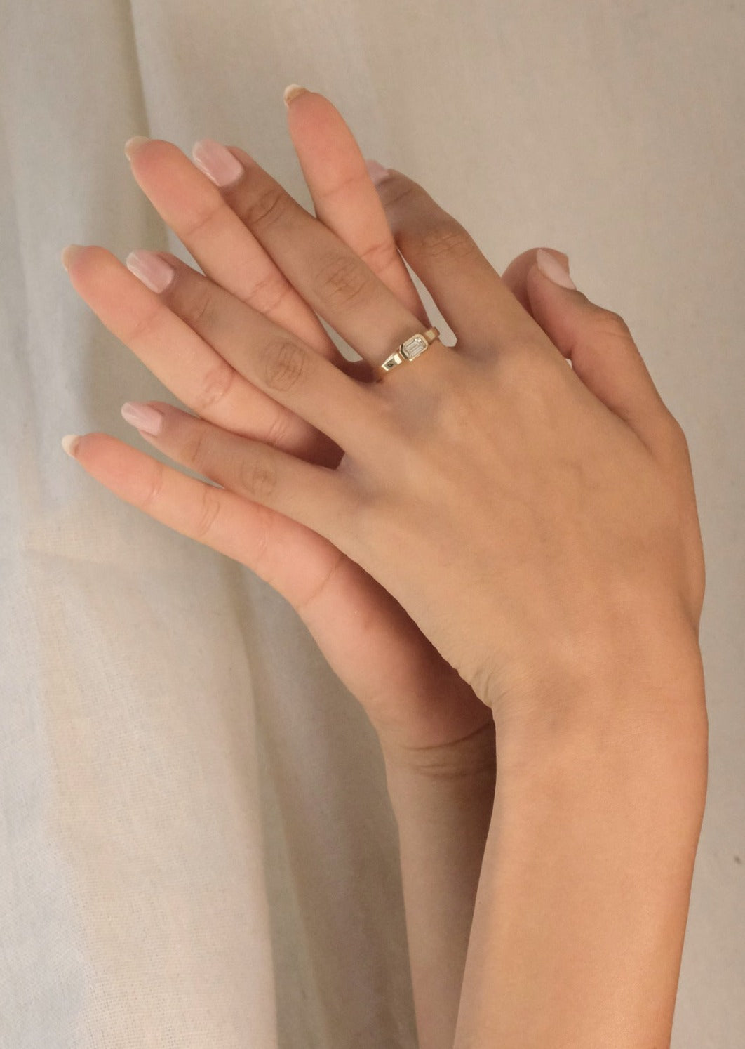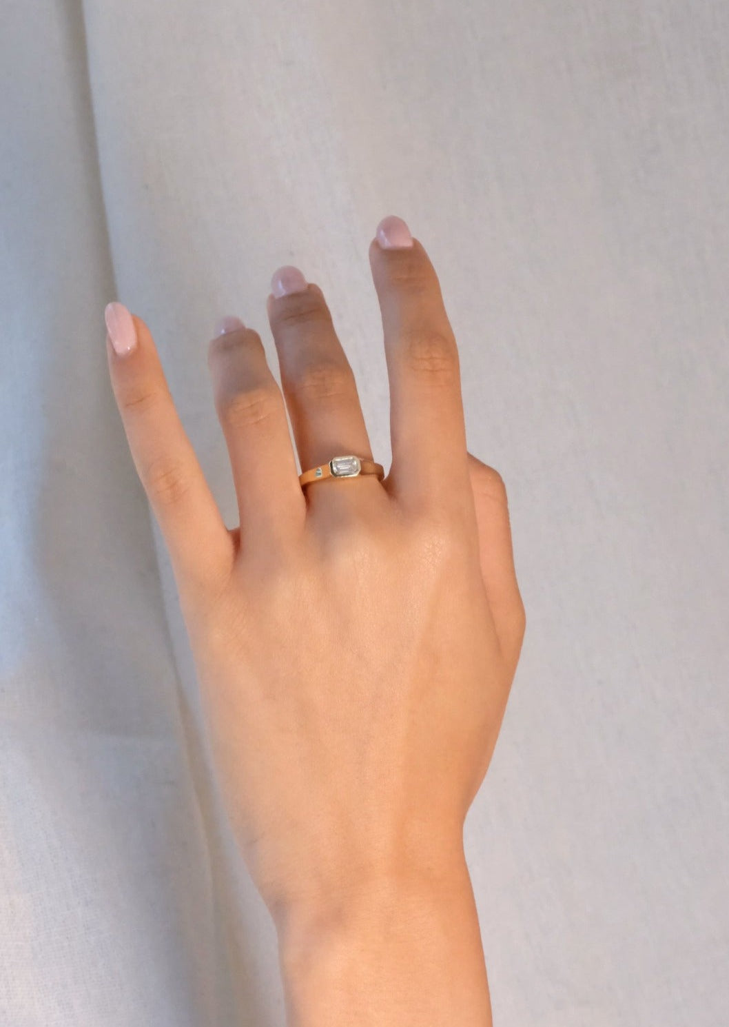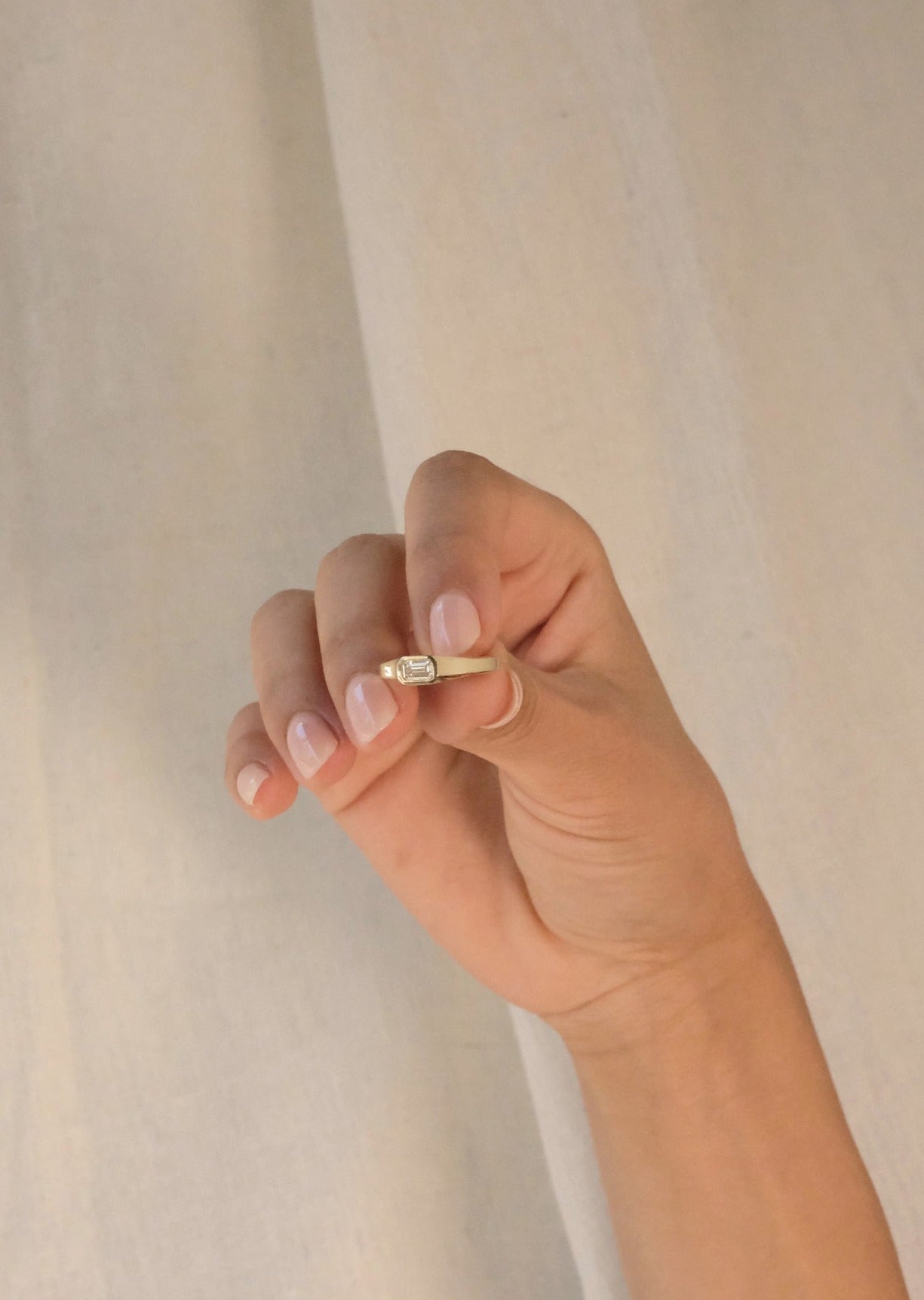 An architectural , art deco inspired ring featuring clean lines for effortless elegance. Bezel setting for a seamless flow and maximum comfort and protection of the stone.