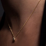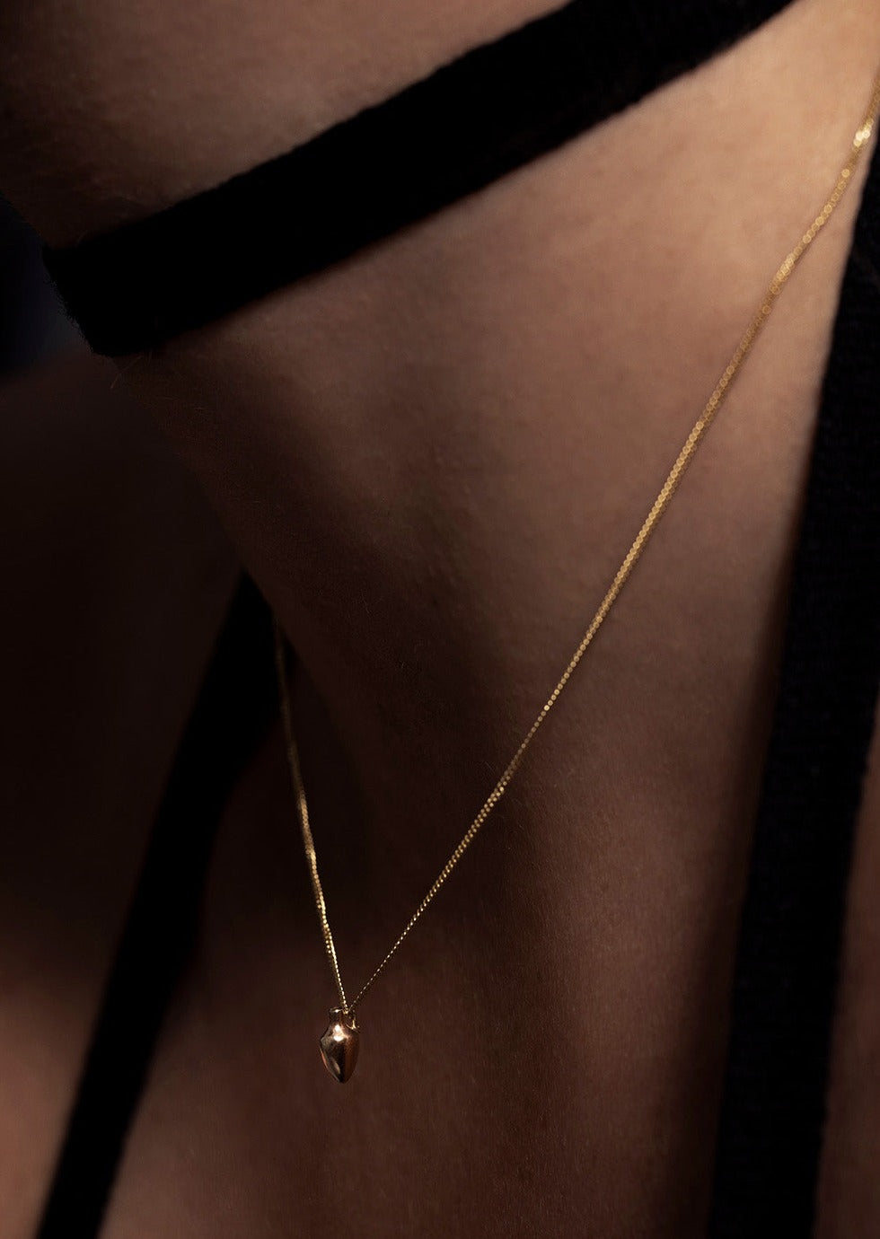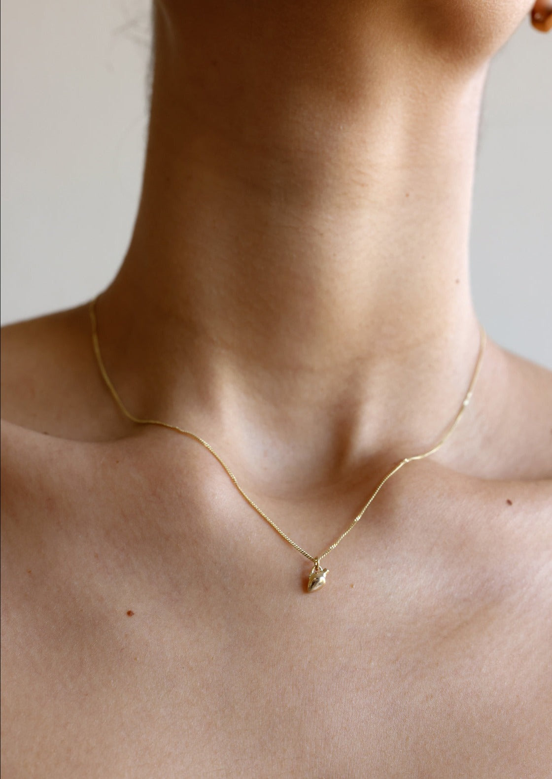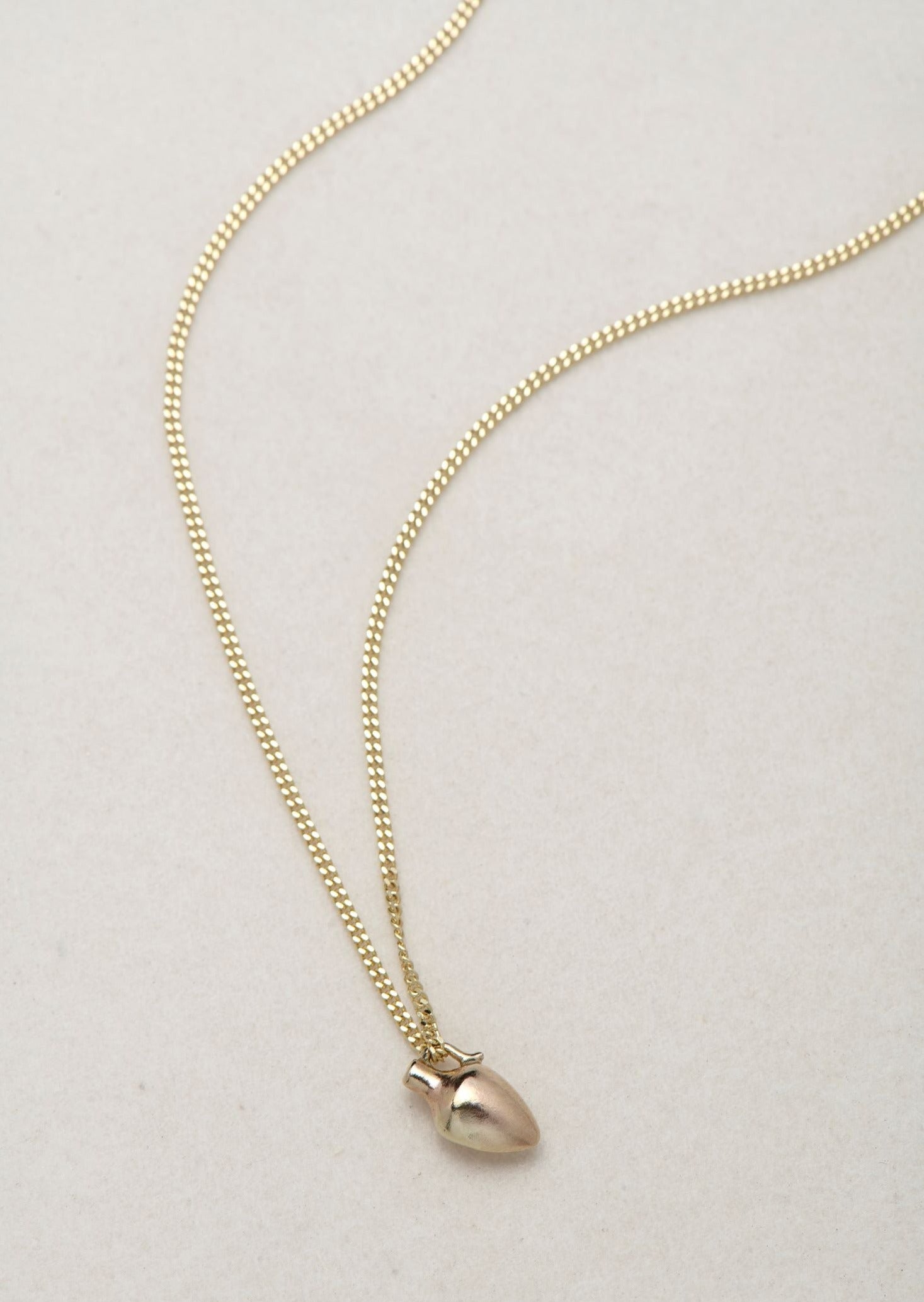 A miniature vase necklace in 14k gold.