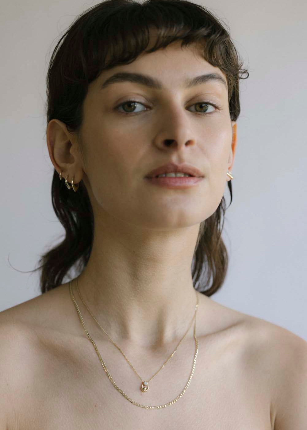 שרשרת זהות יוניסקס מושלמת, בעיצוב אלגנטי ויומיומי ללא מאמץ, עם משמעות על-זמנית. פרשנות מודרנית ומשחקית למורשת הקלאסית של גורמטים – שילוב של חוליות פיגארו מדורגות ושרשרת קלאסית עם לוחית שם מעודנת, שניתן להשאיר חלקה או להתאים אישית עם חריטה, להוספת נגיעה ייחודית ומשמעותית. מיוצרת מזהב 14K מלא.