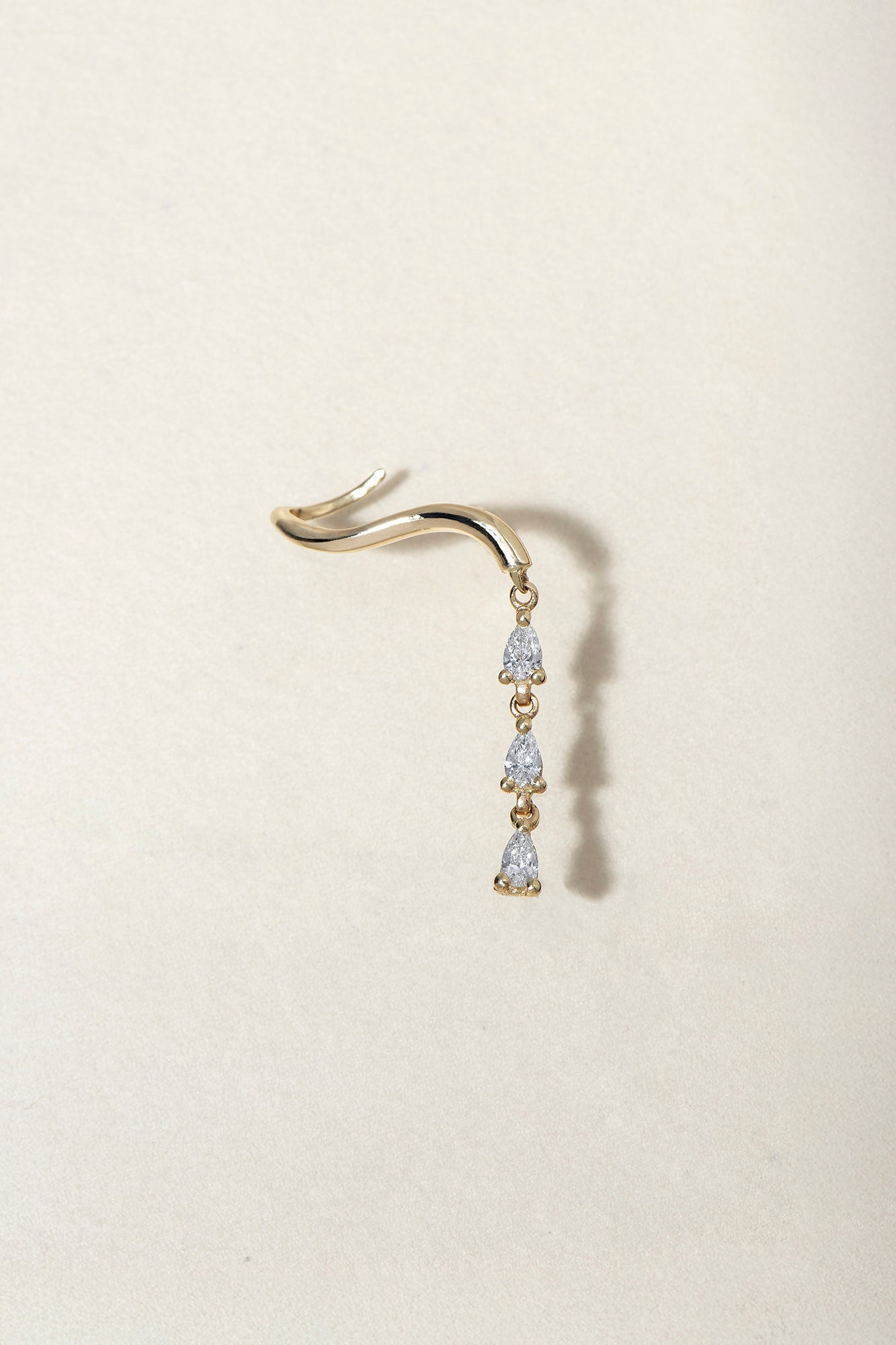 עגיל זהב אלגנטי המחקה את התנועה הנוזלית של נחש, מתפתל בחן סביב האונה שלך ומסיים בטיפה עדינה של