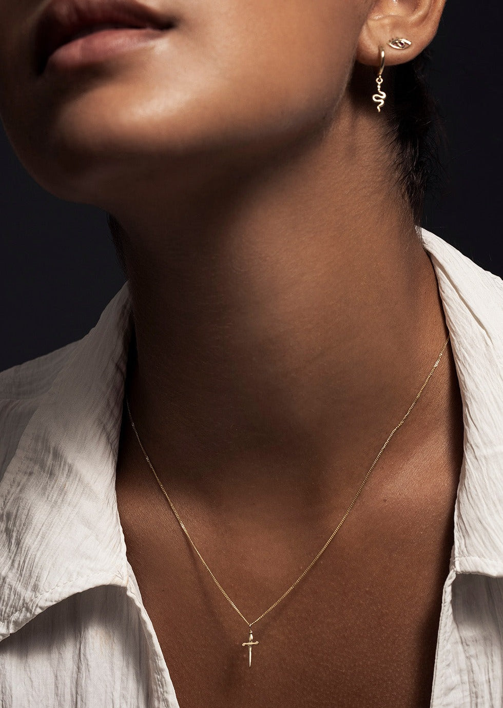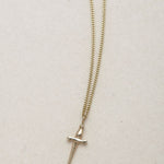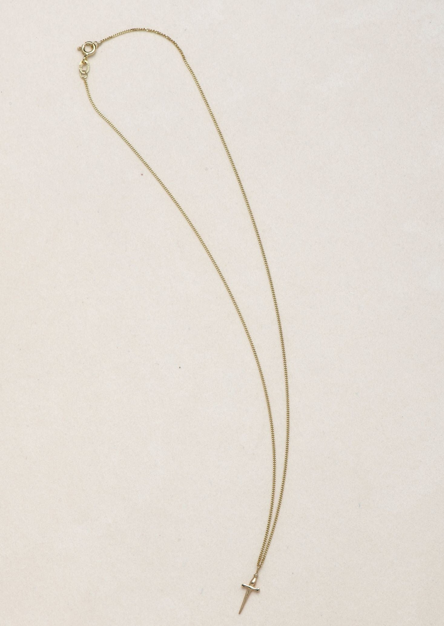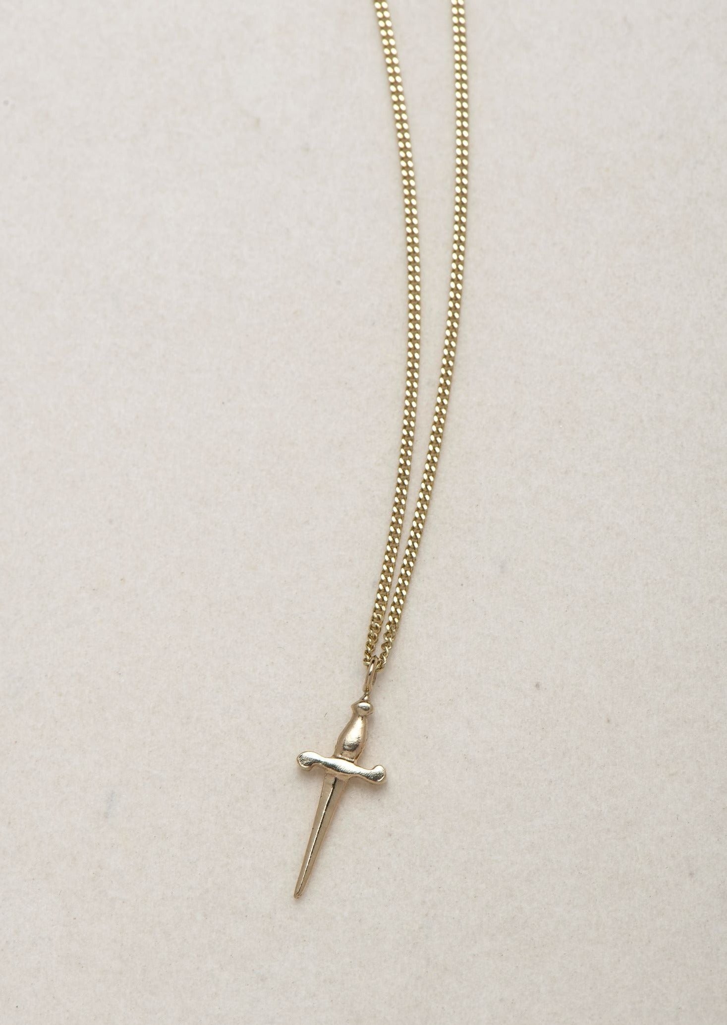 גרסה מיניאטורית חדשה מעט שונה של תליון החרב האייקוני שלנו בזהב 14 קראט.