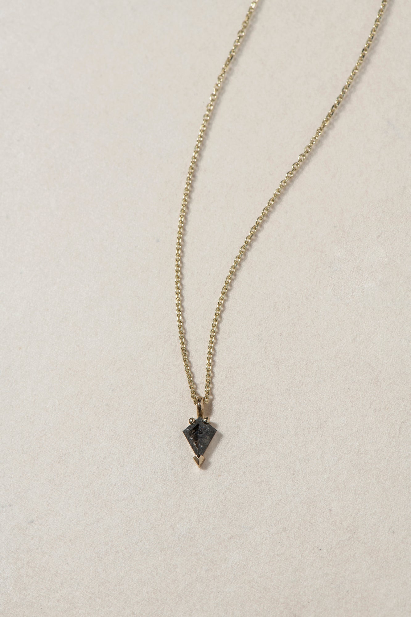 שיבוץ יהלום אפור מיוחד במינו, תלוי על שרשרת עקבות זהב 14K.