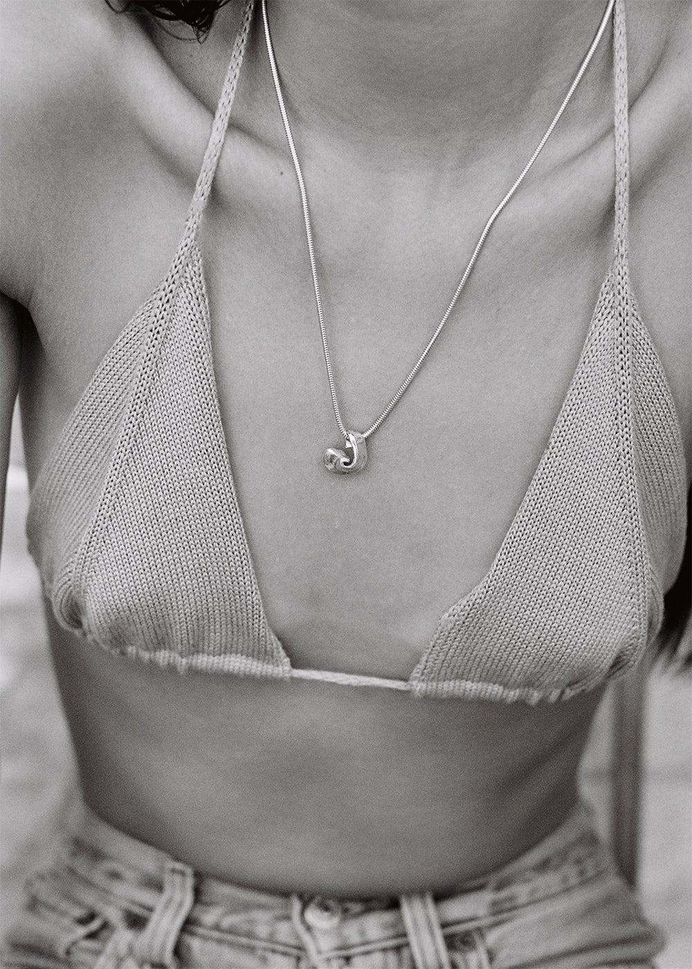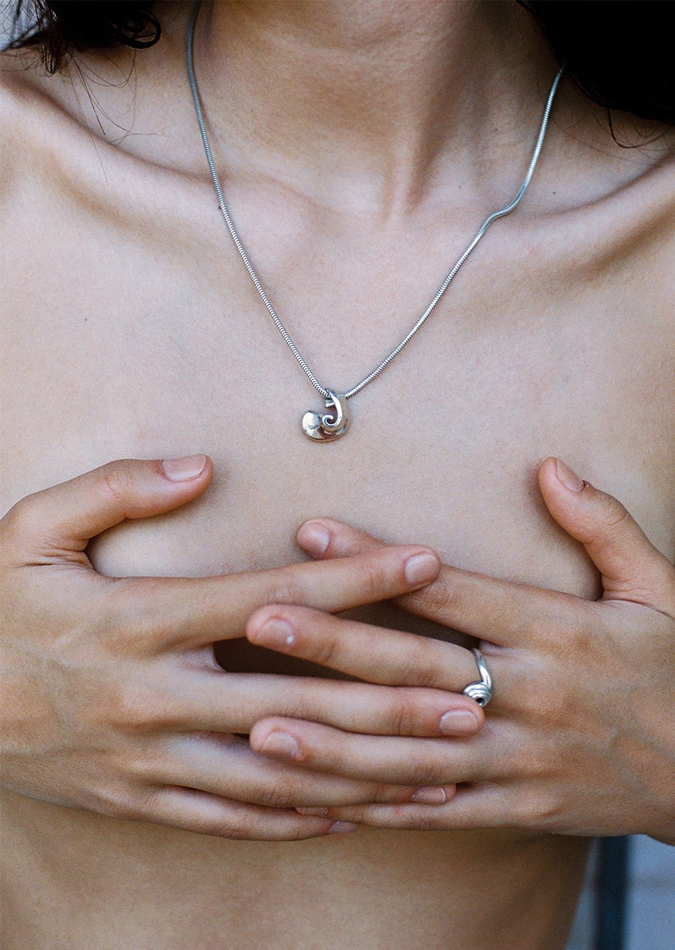 תליון כסף שמנמן הדומה לגל. בהשראת פיסול הים מצדפים שבורים.