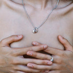 יצירה יומיומית מודרנית מתוחכמת וקז'ואל בו זמנית. הקליפה תלויה על שרשרת נחש ונסגרת עם וו חומר: כסף סטרלינג מידות: אורך כולל 54 ס"מ / תליון 18 מ"מ
