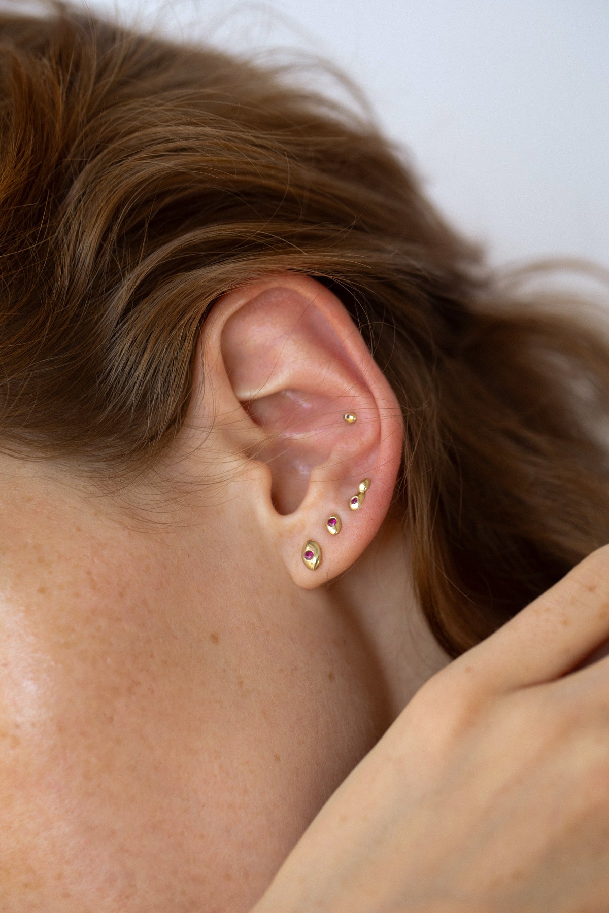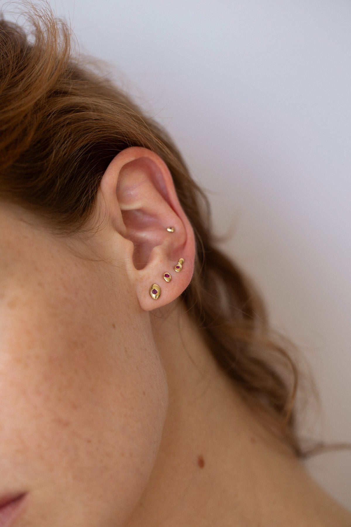 עגיל בצורת חלוק נחל בזהב 14K משובץ ברובי יוקרתי